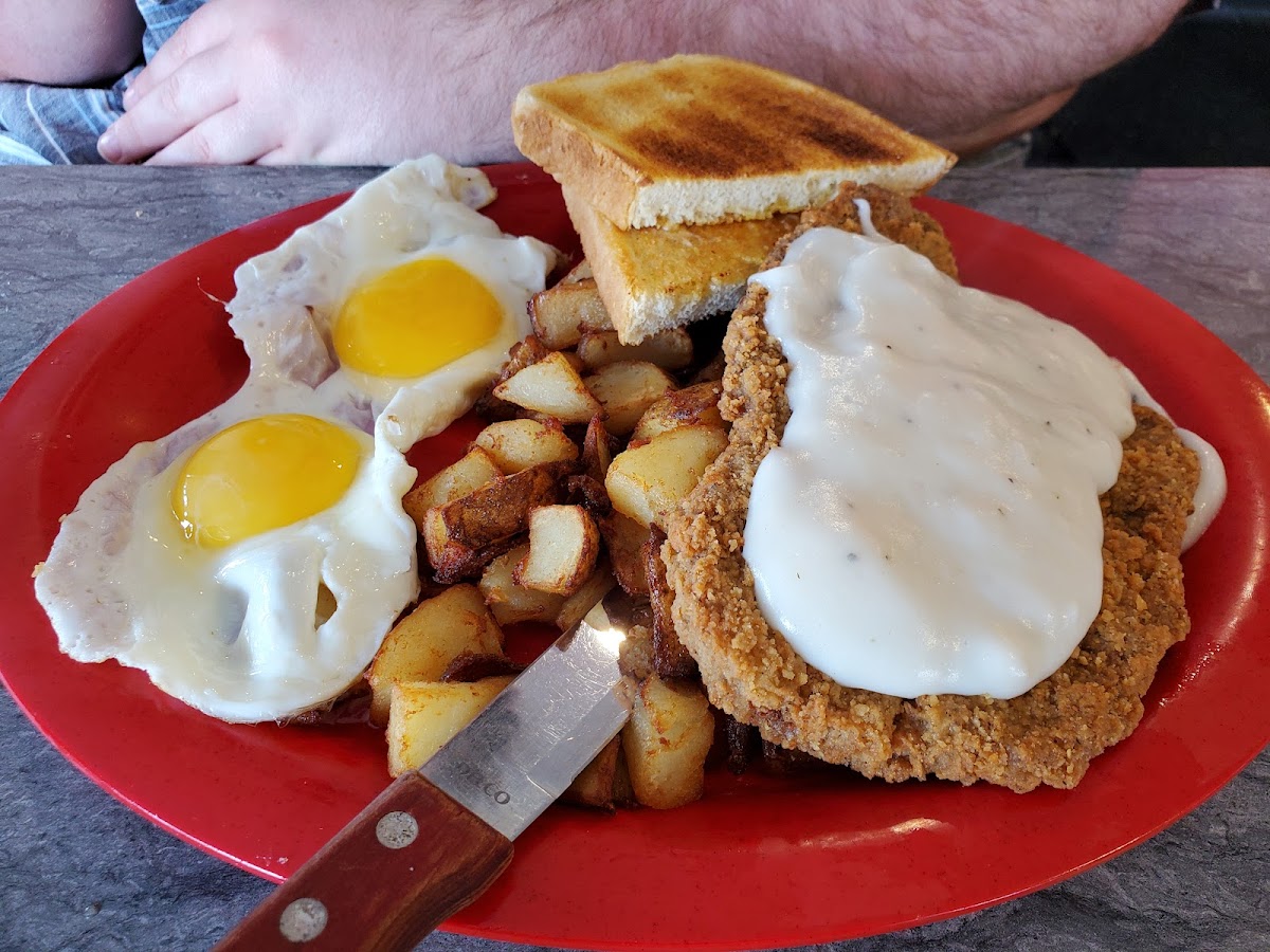 Lived in perice county for 19 years and drove past little hole in the wall restaurant almost every day never stopped in to eat. Boss took crew out for Xmas breakfast. First-time eating a chicken fried steak amazingly juicy or my mouth was watering cause looked so good. Covered in a creamy white gravy, fry country potatoes, toast. It's a Big Breakfast 10/10 best breakfast. I wanted to try one of their cinnamon rolls that was as big as a plate. But had to loosen my belt maybe next time.