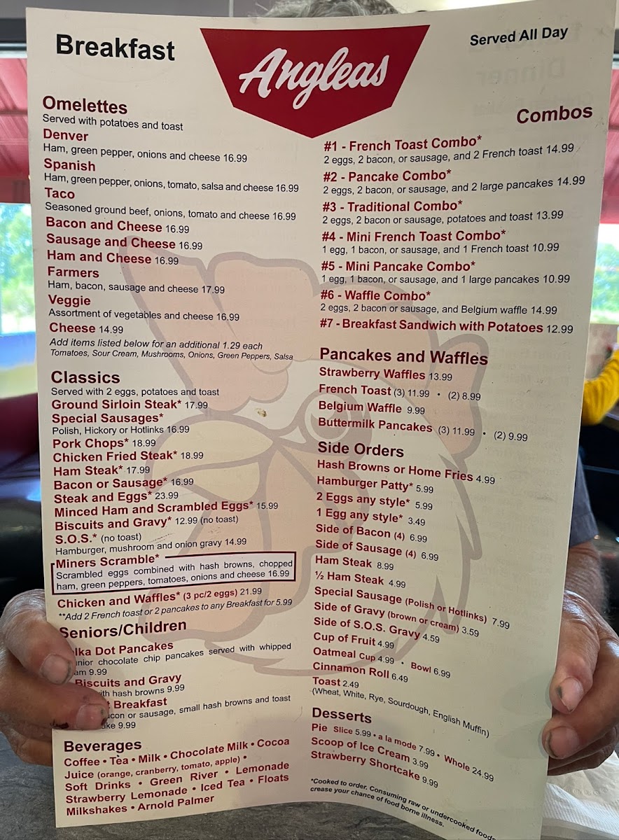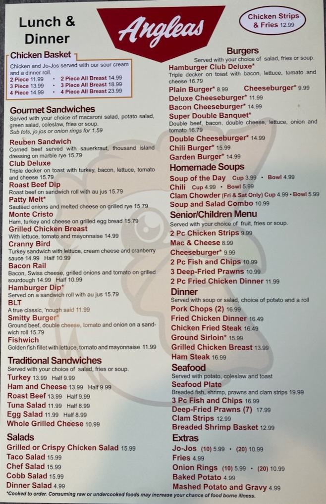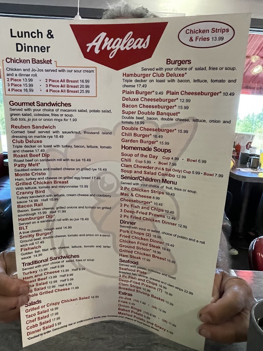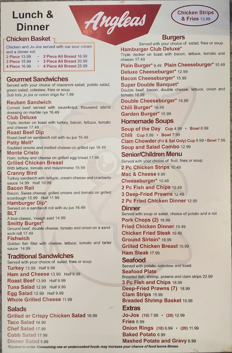Anglea's Restaurant offers a straightforward, comforting menu that blends classic American breakfast favorites with hearty lunch and dinner options. The menu feels like a thoughtful collection of familiar, satisfying dishes—perfect for a cozy meal any time of day.